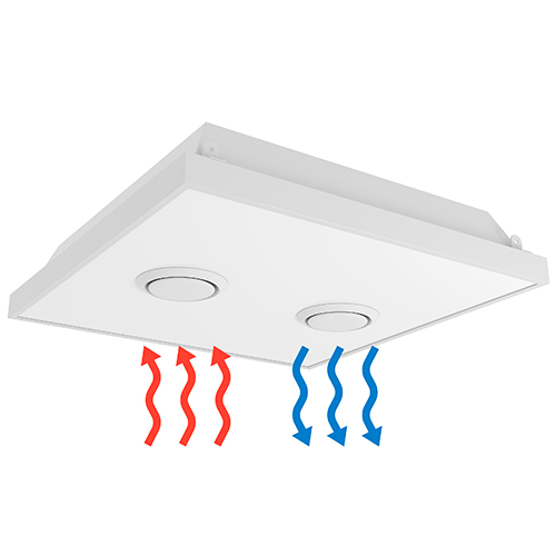 Особая конструкция корпуса закрытого облучения без выделения озона, позволяет использовать обеззараживатель в присутствии людей для снижения количества вирусов и бактерий в воздухе. Для этого загрязненный воздух с помощью бесшумных вентиляторов подается в камеру обработки и после облучения, очищенный поступает обратно в помещение через воздушные диффузоры. При этом изделие способно очистить воздух от вирусов на 99,9% разрушительно действуя на ДНК клеточного ядра микроорганизмов.