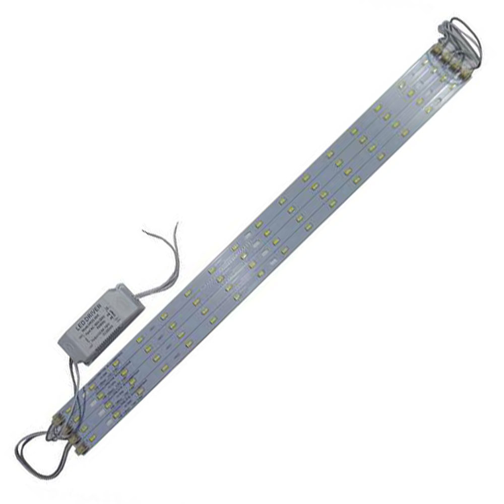 LED линейка — это жесткая алюминиевая основа с яркими диодами, которая обладает клеевым покрытием и отверстиями под крепления, что помогает просто установить комплект. Она является простым и наиболее дешевым способом обновить светильники.