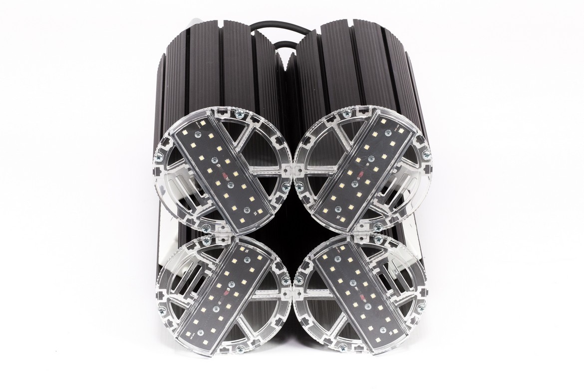 Светильник прожекторного типа X-RAY 200 мощностью 200 Вт может быть использован как мощный производственный светильник «колокол» с подвесным типом крепления. В светильниках серии X-RAY используются мощные светодиоды NICHIA 219 С серии — по 16 светодиодов с общим световым потоком 6280 Лм. Светодиоды NICHIA обладают высоким коэффициентом цветопередачи более 70 Ra, что обеспечивает естественную цветопередачу освещаемых объектов.